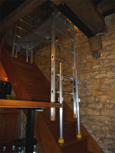 Ce site vous permet en passant par l index et l accueil , de voir les echelles transformables ainsi que les echelles a coulisse . Les echelles de toit sont tres demandées grace a leurs crochets. Escabeaux, echelle articulee et marchepieds de 3 a 12 marches sont tres robuste. les petits echafaudages aluminium et les grands echafaudages aux normes Europeennes et AFNOR avec les details de verrous automatiques de garde-corps, de manchons, de traverses, de plateaux, de roues standards, de roues de rattrapage de niveau, de pieds de stabilisations grands modeles et petits modeles, et tous les accessoires de securites vous rassureront. le special stabilisateur universel avec de nombreuses photos est adaptable sur toutes les echelles, Les plate-formes de securite sont presentées. De multiples videos sequentielles vous feront voir divers montages( 3 plans, pmr, transport, escabeaux, stabilisateurs genoux et page vidéo generale), La page prix et la page bon de commande vous donneront la marche a suivre pour commander en vente directe .pour les échelles télescopiques comme pour l' échelle de grenier ou escalier escamotable |